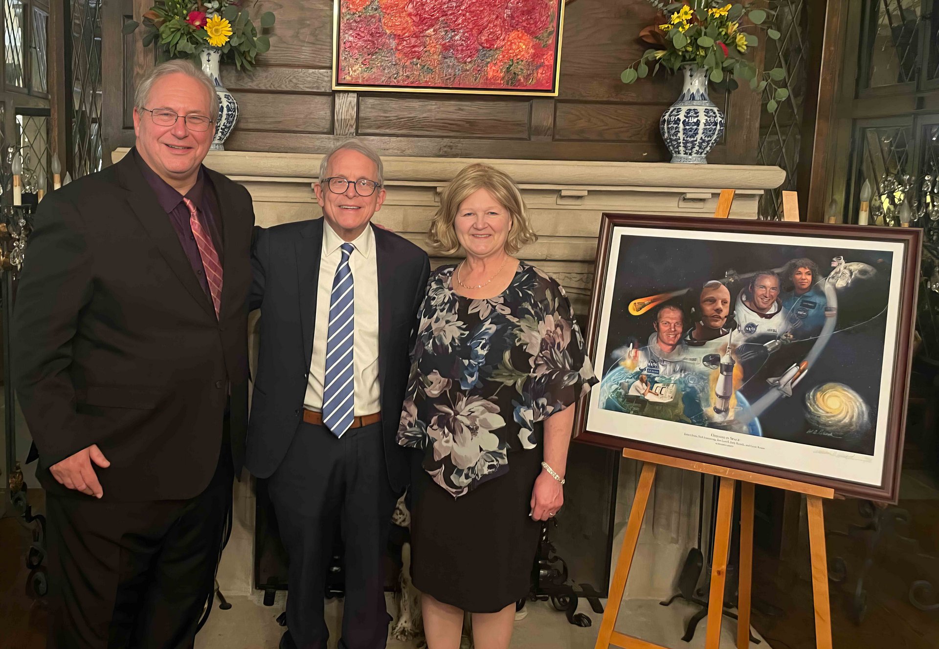 Bill and Carol Hinsch, presenting print of the painting to Ohio Governor Mike DeWine