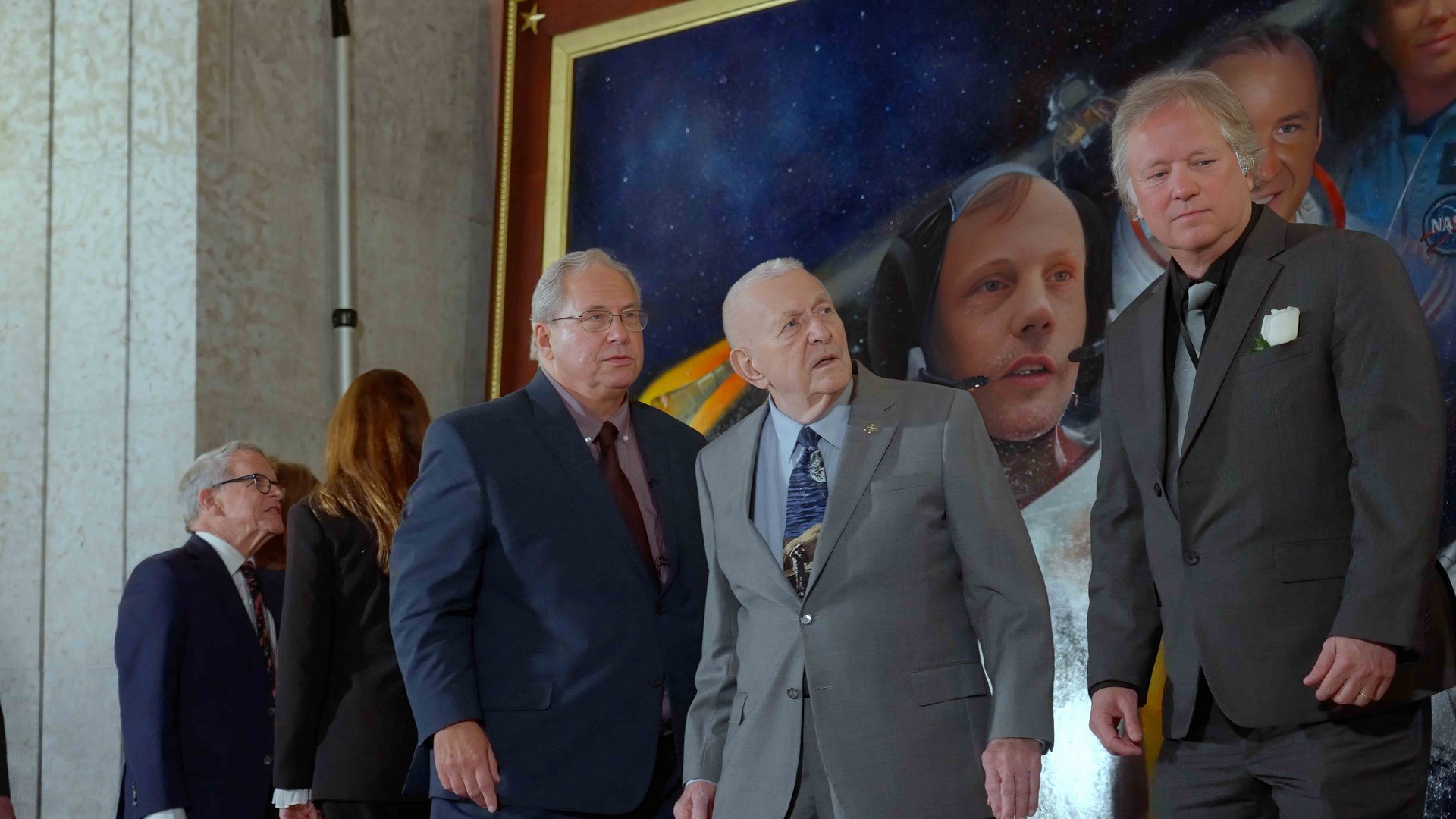 The families of the 5 Ohio astronauts depicted in the painting, unveiled at the Gala